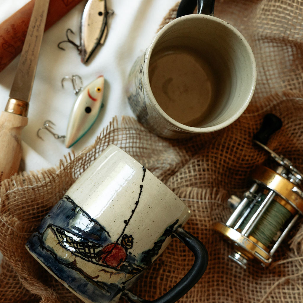 This collection features handmade stoneware coffee mugs crafted in my Whitemouth, Manitoba...