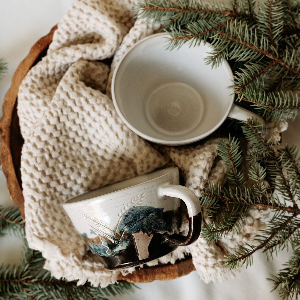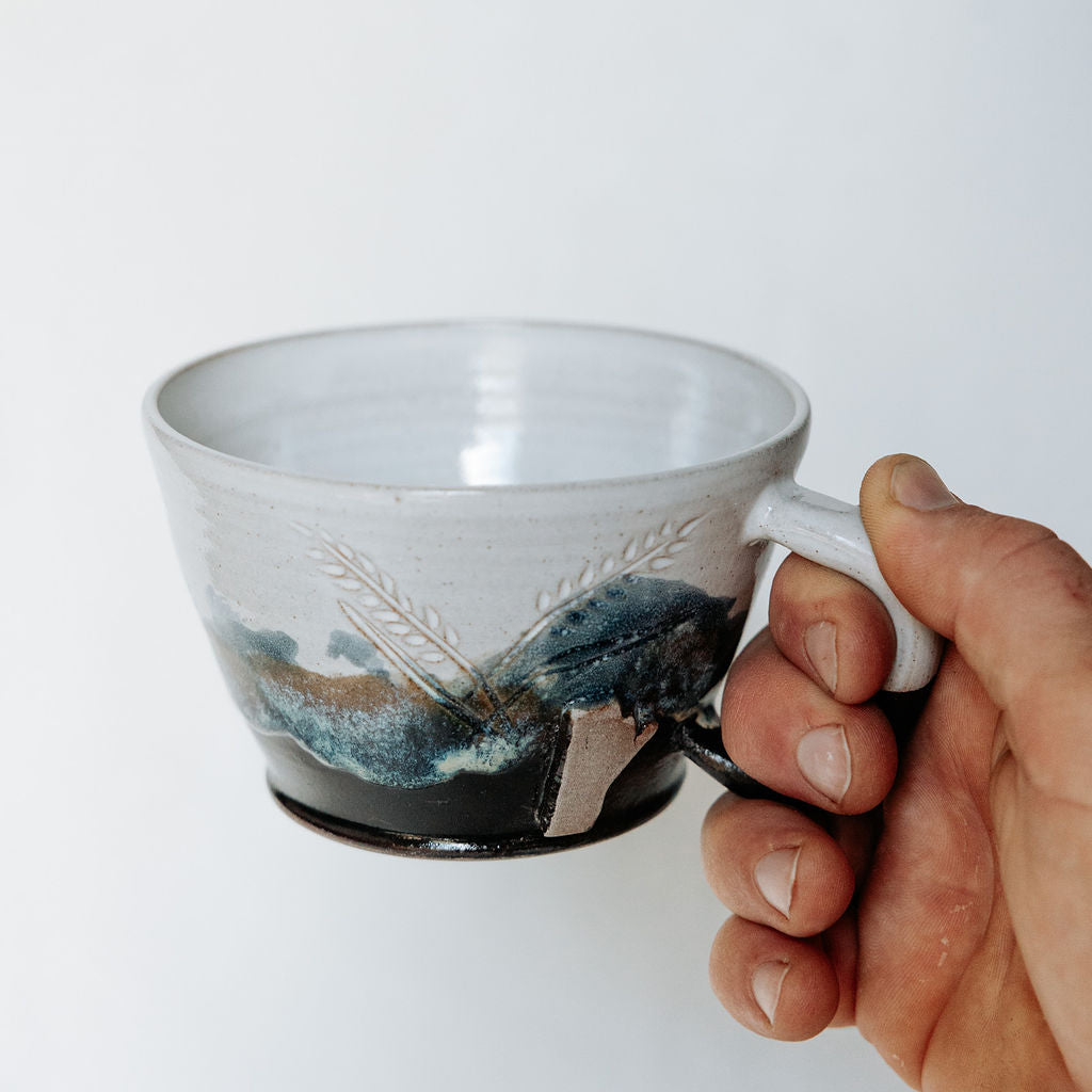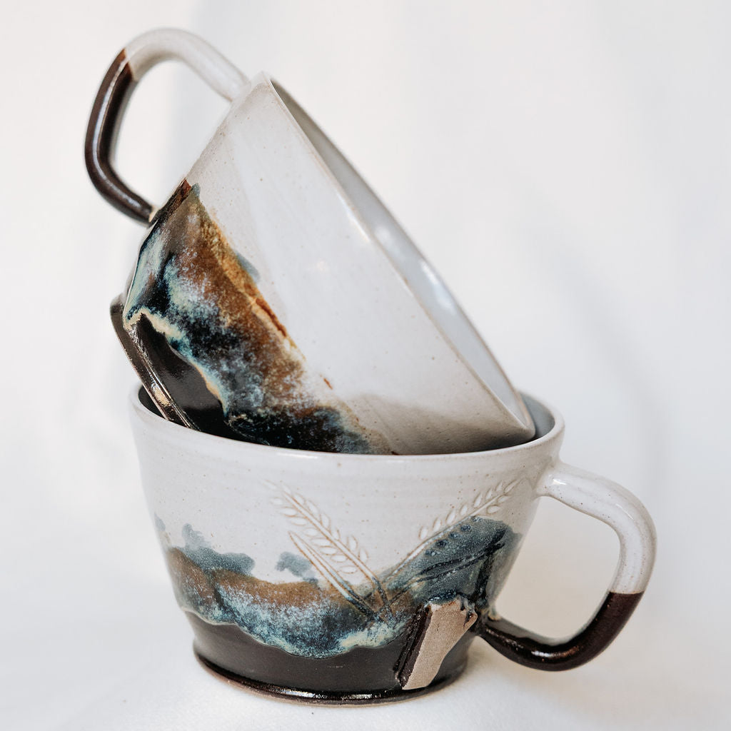 Pottery Latte Cups, Manitoba Carved Wheat Ceramics